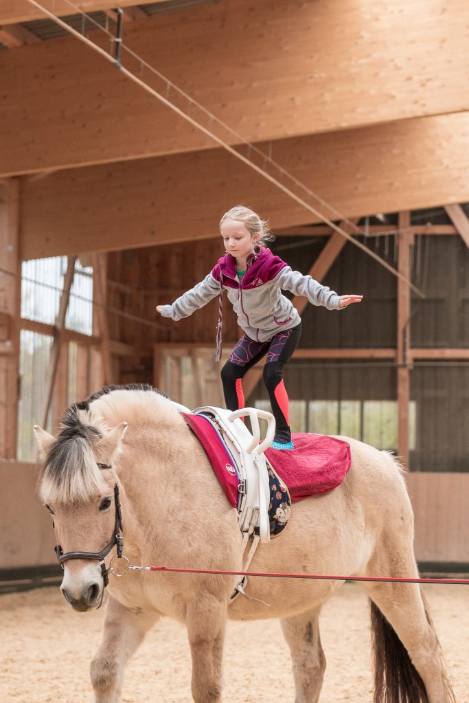 Das heilpädagogische Voltigieren eignet sich besonders für Menschen mit Entwicklungsverzögerungen, Verhaltensauffälligkeiten, motorischen oder emotionalen Schwierigkeiten. Die Einheiten werden individuell angepasst und von qualifizierten Fachkräften angeleitet.